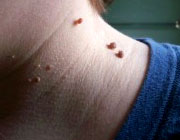 شایع ترین نواحی پوستی که گرفتار می شوند عبارت هستند از: زیر بغل 48 درصد، گردن 35 درصد و به میزان کمتر در نواحی کشاله ران.