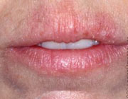 کیلیت(التهاب لب ها) ناشی از رژ یا lipstick معمولا به لب ها محدود شده ولی گاهی نیز فراتر رفته و پوست ناحیه ی مجاور را نیز درگیر و گرفتار می کند؛ همچنان که التهاب ناشی از غذاها نیز پوست ناحیه اطراف لب را مبتلا می کند.